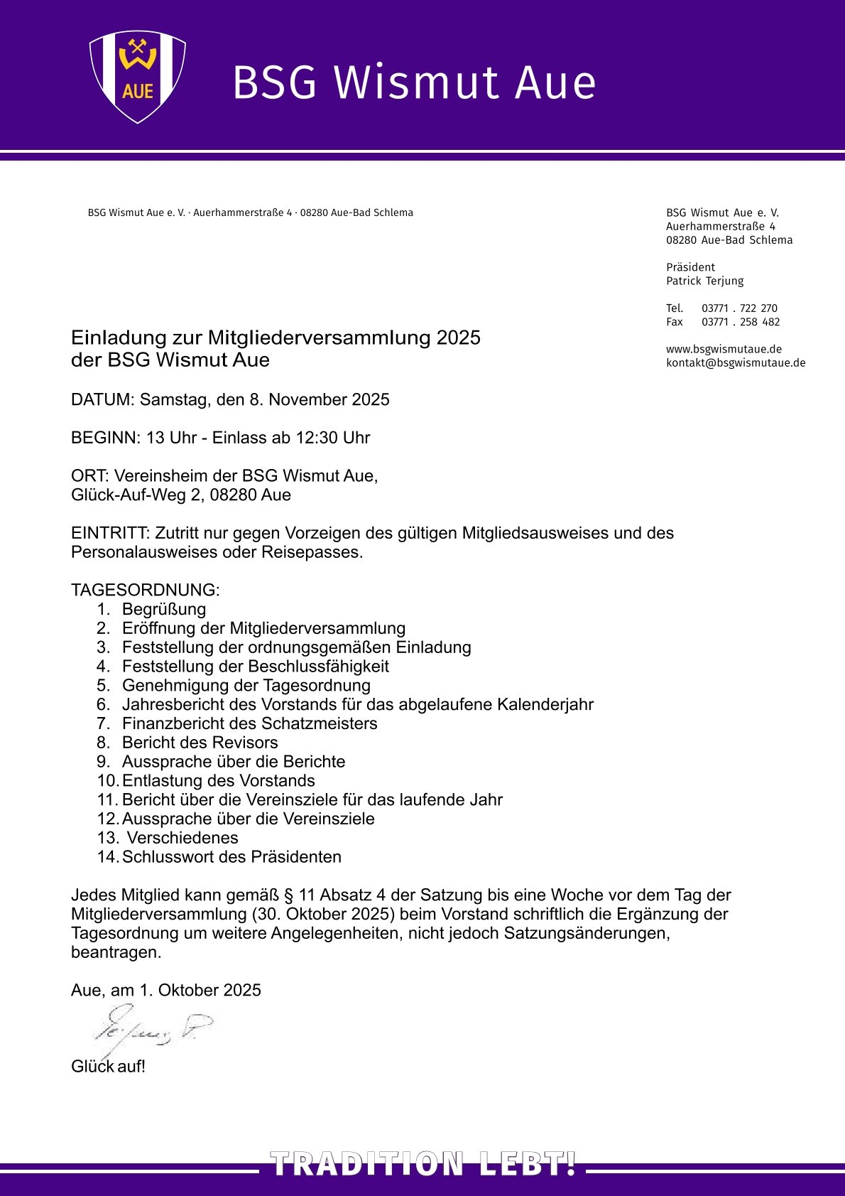 Einladung Mitgliederversammlung 2025